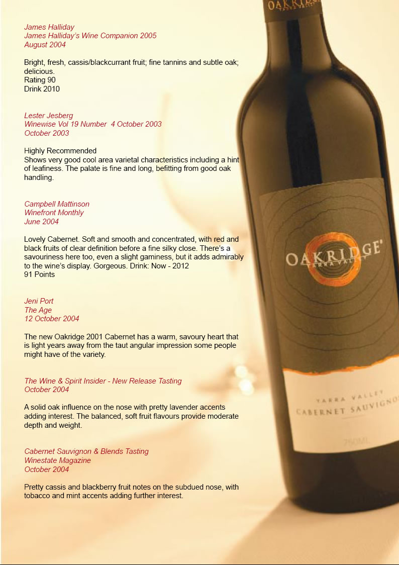 Yarra Valley Cabernets rank with the best in the world. This Cabernet is concentrated, rich, intense, complex and well structured. Displaying powerful blackcurrant fruit, coffee and cooked spice flavours with long fine tannins.